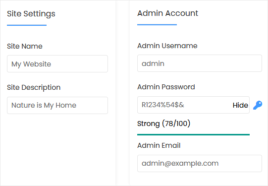 • Admin Username: Your new PopojiCMS username (for security reasons, do not use the administrator or the admin username).